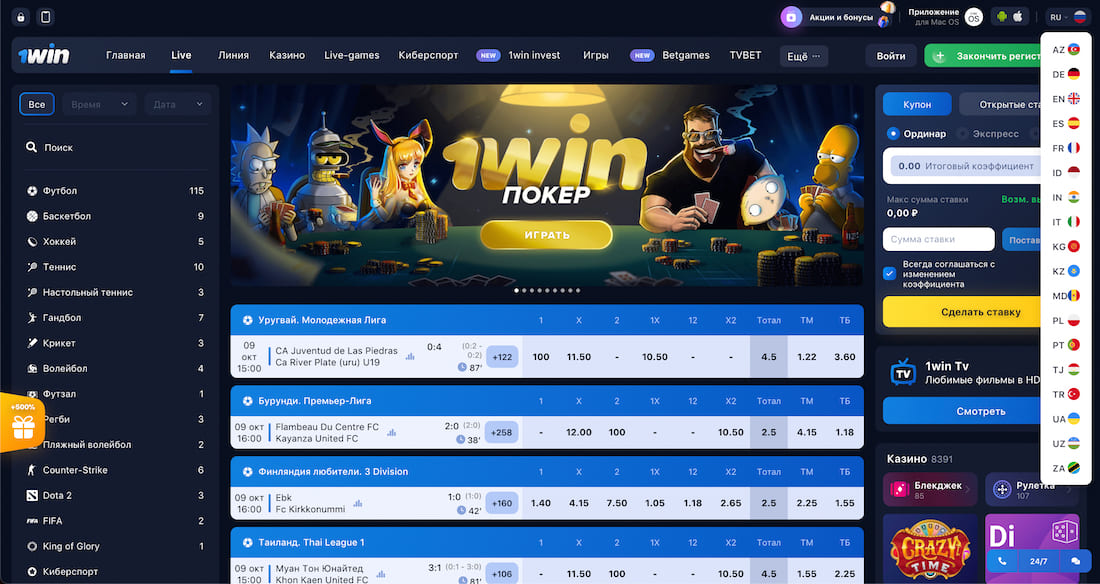 Официальный сайт 1 вин принимает ставки на спортивные и киберспортивные события, а также различные игровые автоматы. Дизайн сайта выполнен в сдержанном стиле, без излишне ярких цветов, что делает его удобным и приятным для глаз. Благодаря продуманной структуре и простой навигации каждый пользователь сможет легко освоиться и быстро начать заключать пари.